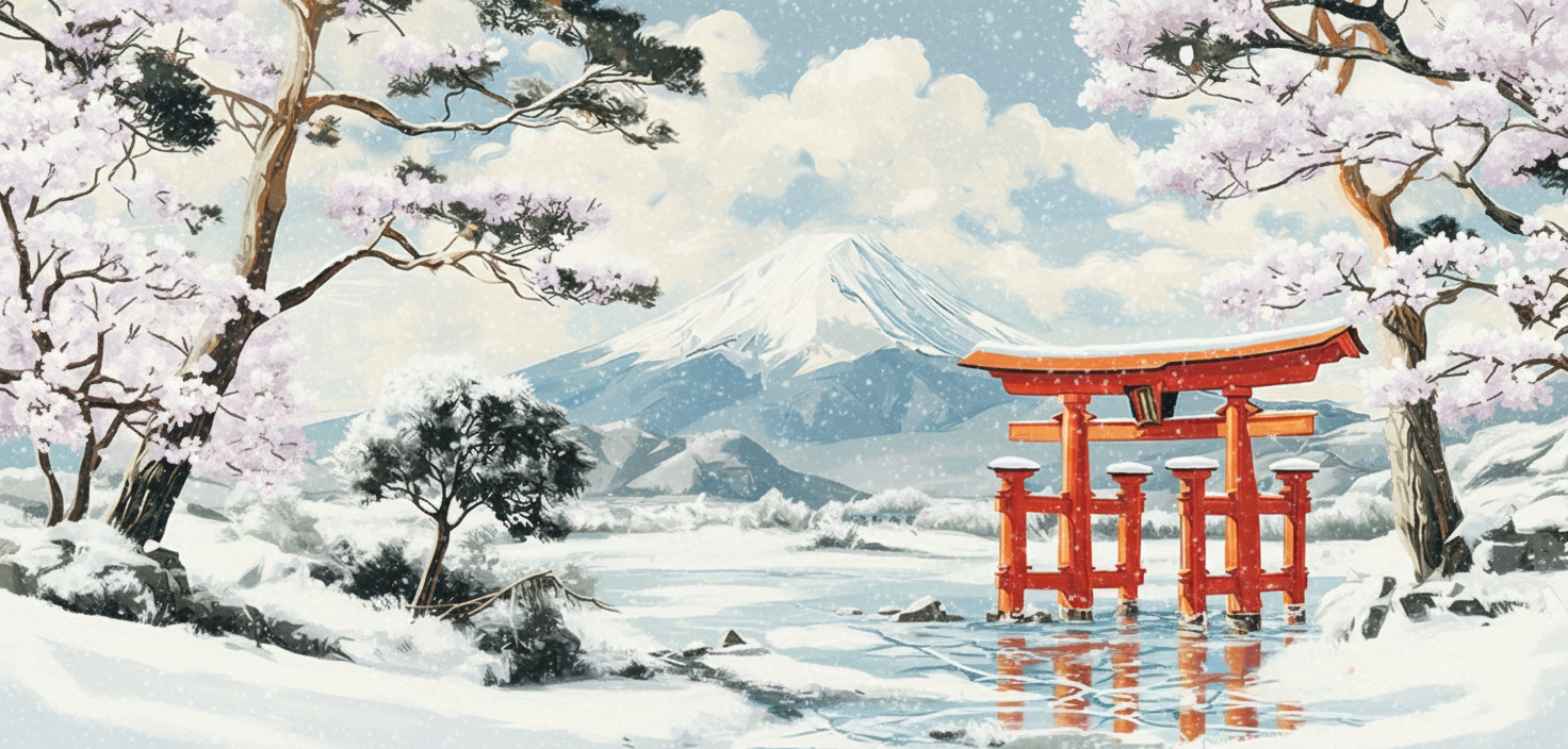 Stoff-Geldbörse Fujisan – Besticktes Bergmotiv mit Sonnenaufgang